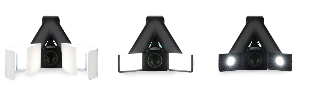 Scegli set 1 per foto intraorali, set 2 per foto extraorali e set 3 per utilizzo dei bouncers